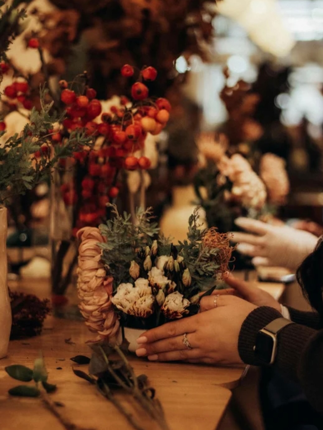 Nuestros talleres están dirigidos a particulares, empresas, colegios y grupos, y se adaptan a diferentes edades y ocasiones. Trabajamos con flor fresca y materiales de calidad, enseñando técnicas básicas de diseño floral y fomentando una mirada natural y personal en cada creación.